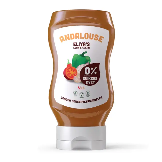 De meeste Andalouse sauzen bevatten dierlijke ingrediĂ«nten, toegevoegde vetten of suikers. Bij Eliya’s Lean & Clean kiezen ze bewust anders. Andalouse Saus zonder vet en suiker (geen toegevoegde suikers) is volledig plantaardig en bevat uitsluitend natuurlijke ingrediĂ«nten. Zo past deze saus perfect binnen een gevarieerd en verantwoord eetpatroon. Bovendien bevat deze vetvrije Andalouse Saus geen onnodige toevoegingen. Wat je proeft is puur.Â