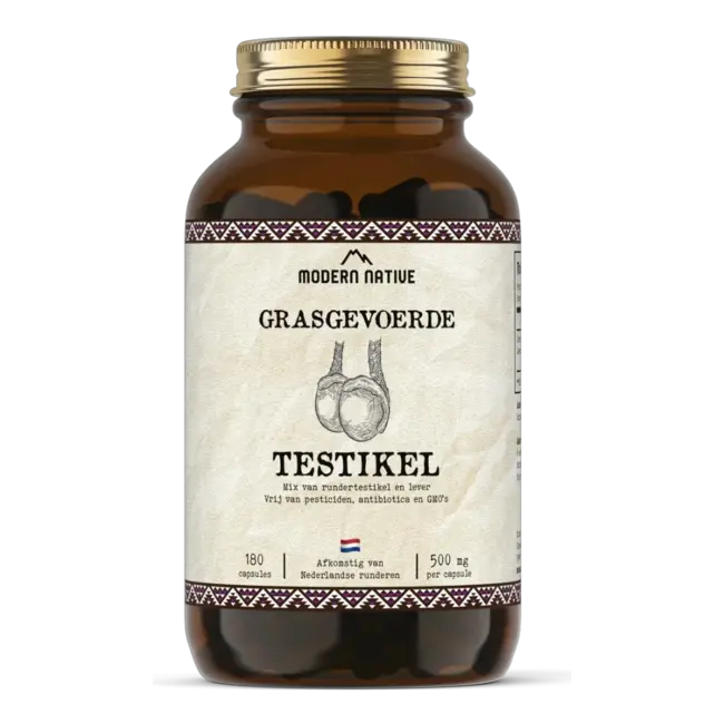 Grasgevoerd Rundertestikelsupplement wordt gemaakt van runderen uit Nederland die voornamelijk met gras zijn gevoerd, passend bij hun natuurlijke dieet. Het product bestaat uit rundertestikel en runderlever en sluit aan bij traditionele voedingspatronen waarin het gebruik van het hele dier centraal staat. Door de capsulevorm is het eenvoudig om dit type voeding in een moderne routine op te nemen, zonder bereiding of smaakbeleving van orgaanvlees.