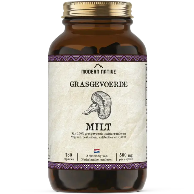 Grasgevoerde rundermilt is een puur orgaansupplement met van nature heemijzer, vitamine B12, selenium en vitamine C. Het product bestaat uit pure, rauwe rundermilt van grasgevoerde runderen uit Nederland, verwerkt tot een zuiver product in capsulevorm. Lees meer.
