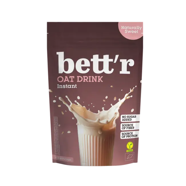 Bett'r instant poeder voor haverdrank is bevat enkel biologisch havermeel en een klein beetje zout. Deze glutenvrije haverdrankpoeder is een uitstekend alternatief voor koemelk of andere plantaardige dranken in vloeibare vorm. Ideaal om snel een drankje te maken want de poeder is lang houdbaar. Of je nu thuis bent, op het werk of onderweg, jouw gezonde keuze is altijd dichtbij.