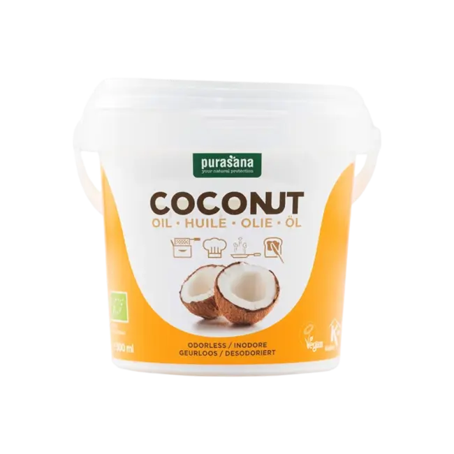 Kokosolie geurloos van Purasana is een puur plantaardig product, zorgvuldig geselecteerd en duurzaam geproduceerd. Het ontgeuringsproces verloopt via stoom, wat ervoor zorgt dat de geuren die aanwezig zijn in de kokosolie, snel verdampen door de stoom. De olie wordt hierdoor niet te warm wordt gemaakt en de stoom doet geen afbreuk aan het eindproduct. Doordat de olie geen kokosgeur of -smaak heeft, is hij uitermate geschikt voor zowel koude als warme bereidingen. Denk aan bakken, braden of frituren – zonder invloed op de smaak van je ingrediënten. Kokosolie zonder geur wordt vaak gekozen door mensen die een neutrale olie verkiezen maar toch willen koken met een natuurlijk alternatief. Bekijk alle producten van Purasana.