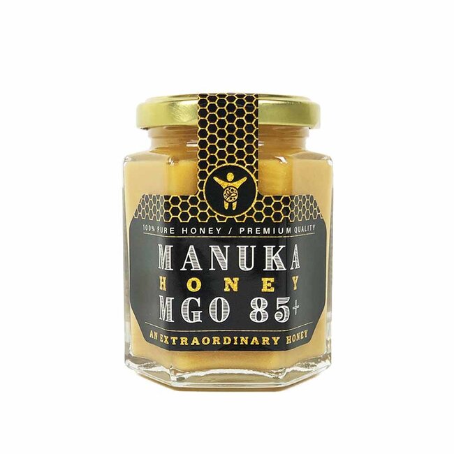 Deze 100% pure honing van de Manukaboom uit Autralië en Nieuw Zeeland staat bekend om zijn unieke werking door het hoge gehalte methylglyoxal. Hoe hoger dit gehalte, hoe krachtiger de werking van de honing. Deze honing bevat een gehalte van 85+ en is ideaal voor dagelijks gebruik in de keuken.