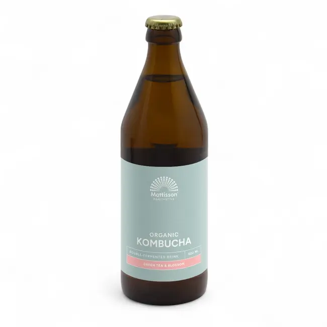 Door het fermentatieproces ontstaat een lichte natuurlijke bruis. De kombucha is niet gepasteuriseerd en bevat minder dan 0,2 gram restsuiker per 100 ml. Tijdens fermentatie kunnen zich natuurlijke deeltjes of slierten vormen. Dit hoort bij het product en is normaal.