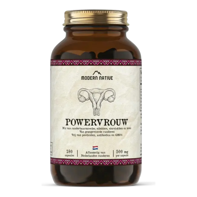 Powervrouw Runderorgaansupplement is een uniek supplement dat bestaat uit een combinatie van runderbaarmoeder, eierstokken, eileiders en lever van Nederlandse grasgevoerde runderen. Deze specifieke samenstelling maakt het product onderscheidend binnen het aanbod van dierlijke supplementen. De ingrediënten worden zorgvuldig geselecteerd en minimaal bewerkt, zodat de oorspronkelijke structuur behouden blijft. Hierdoor sluit het Powervrouw Runderorgaansupplement goed aan bij gebruikers die bewust kiezen voor producten met een traditionele en dierlijke basis, waarbij transparantie en herkomst centraal staan.