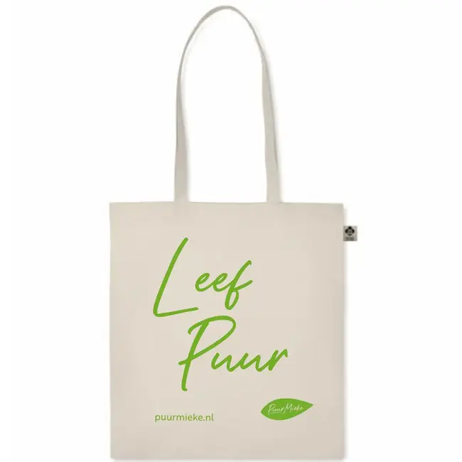 Ideaal voor de dagelijkse boodschappen of als makkelijke handtas. De Puur Mieke tas is gemaakt van 100% biologisch katoen en heeft lange hengsels voor een fijn draagcomfort.
