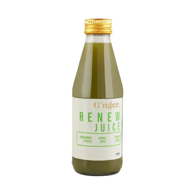 Renew Gembersap is een perfecte sap van frisse komkommer, zoete appel, pittige gember, milde spinazie en een vleugje venkel. Lees meer.